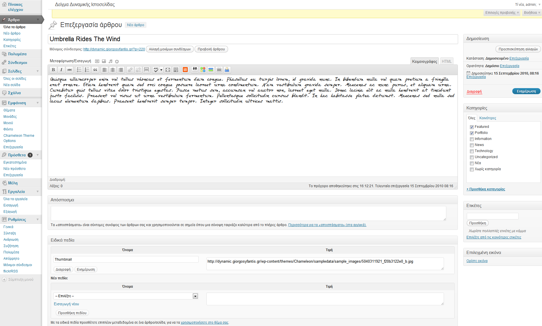 Ζητήστε μας να σας δείξουμε κι άλλα δείγματα δυναμικών ιστοσελίδων που ίσως ταιριάζουν περισσότερο με το γούστο σας... |